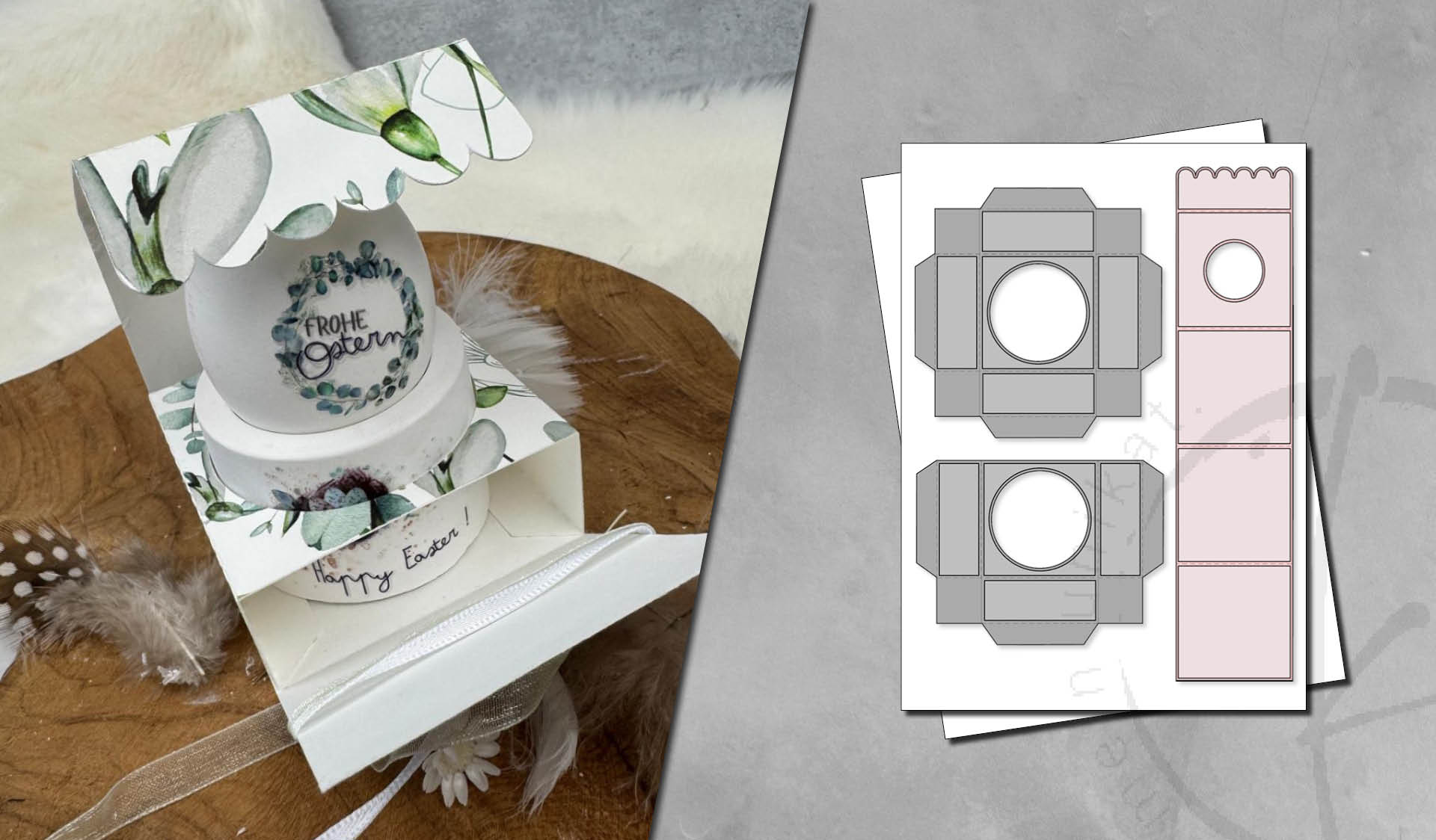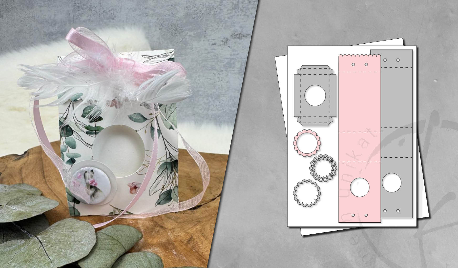 Mit dieser Plotterdatei erhältst Du zwei verschiedene Varianten einer süßen Geschenkverpackung.
